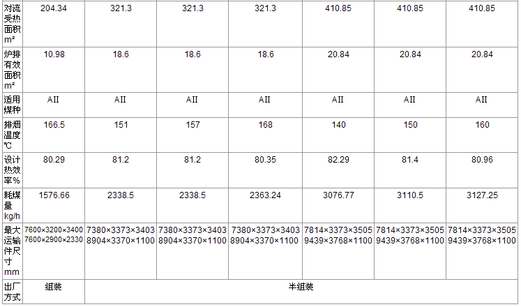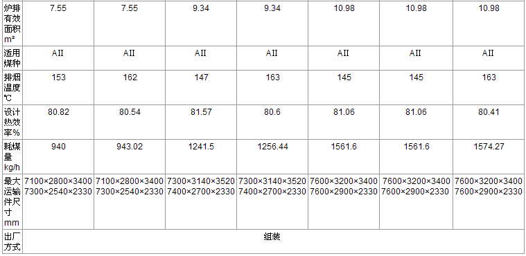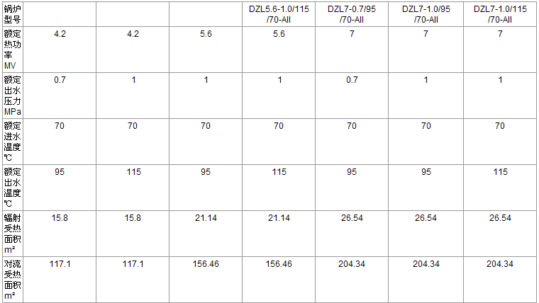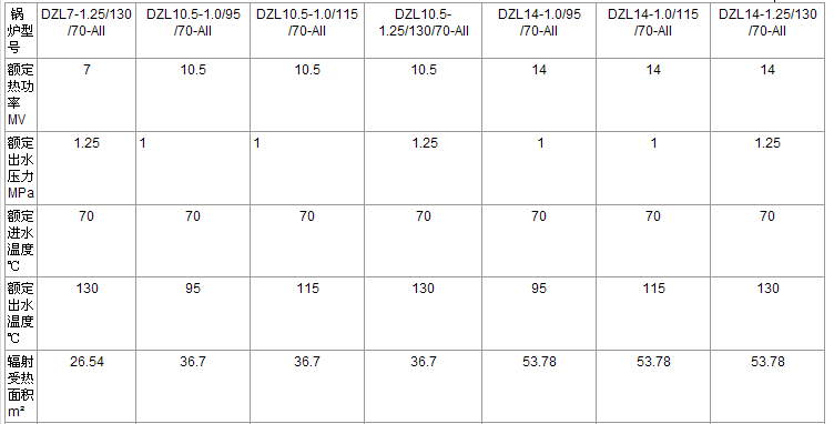 DZL快裝、組裝、半組裝熱水鍋爐技術參數
